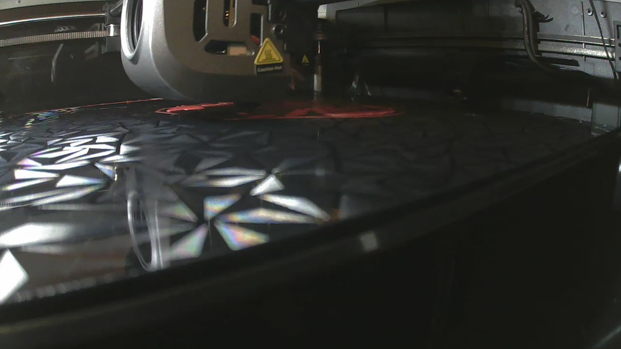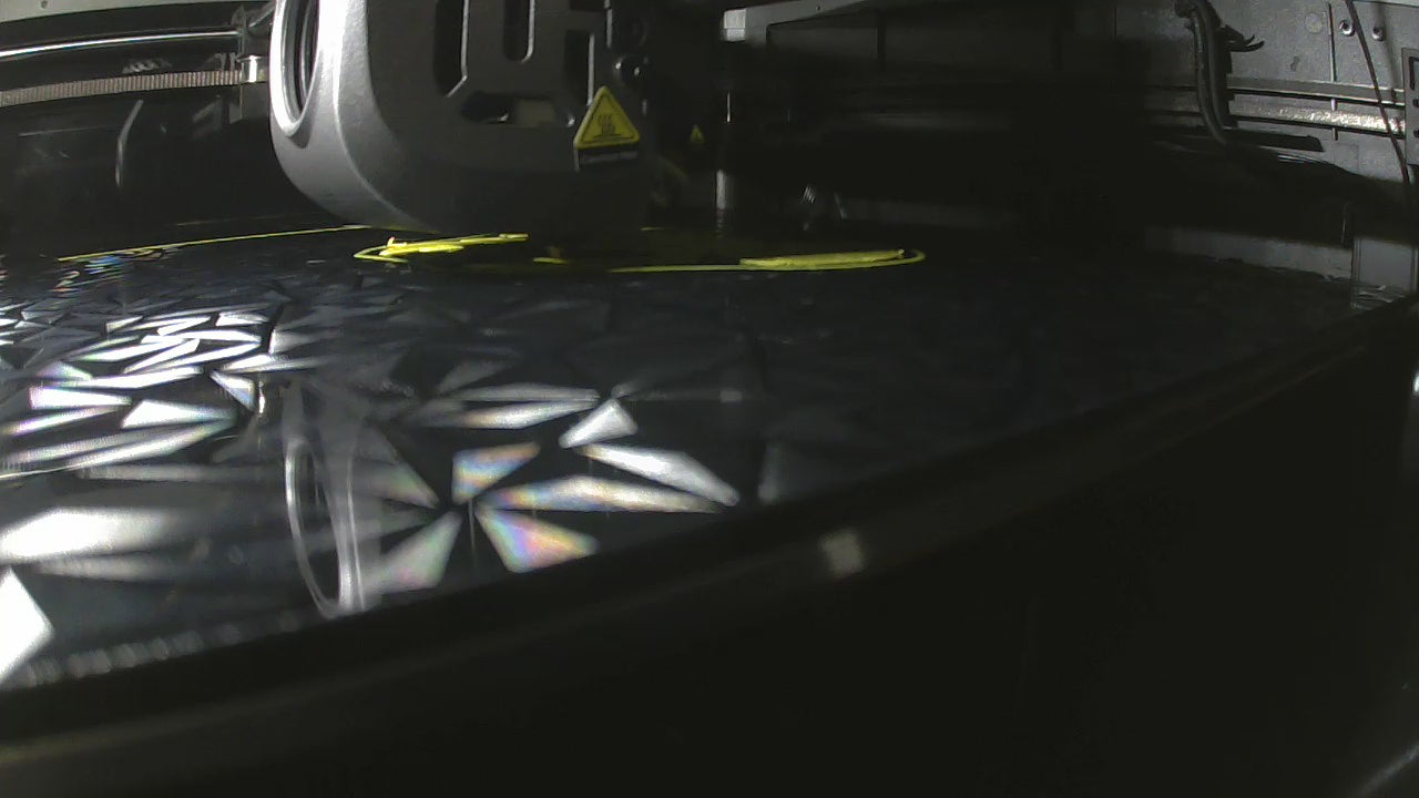 Each print is printed on a hydrodip crystal pattern build plate.