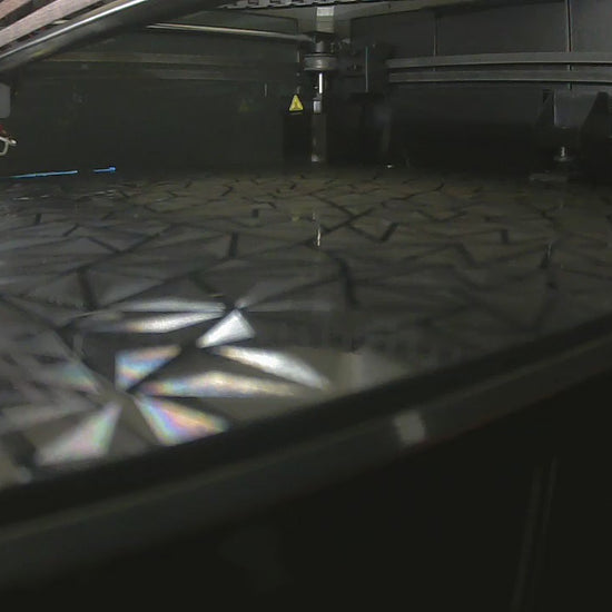 The material used is a PLA+ that offers a stronger structurability than normal PLA with a much more smoother and detailed surface.