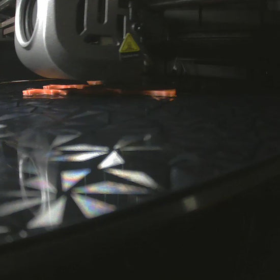 The material used is a PLA+ that offers a stronger structurability than normal PLA with a much more smoother and detailed surface.