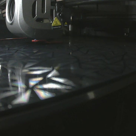 The material used is a PLA+ that offers a stronger structurability than normal PLA with a much more smoother and detailed surface.